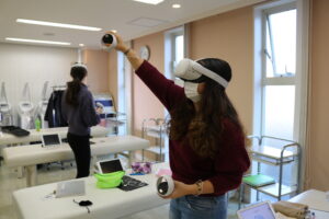 ミス・パリエステティック専門学校名古屋校の学生が、オンライン・VRを使用した英会話授業を体験